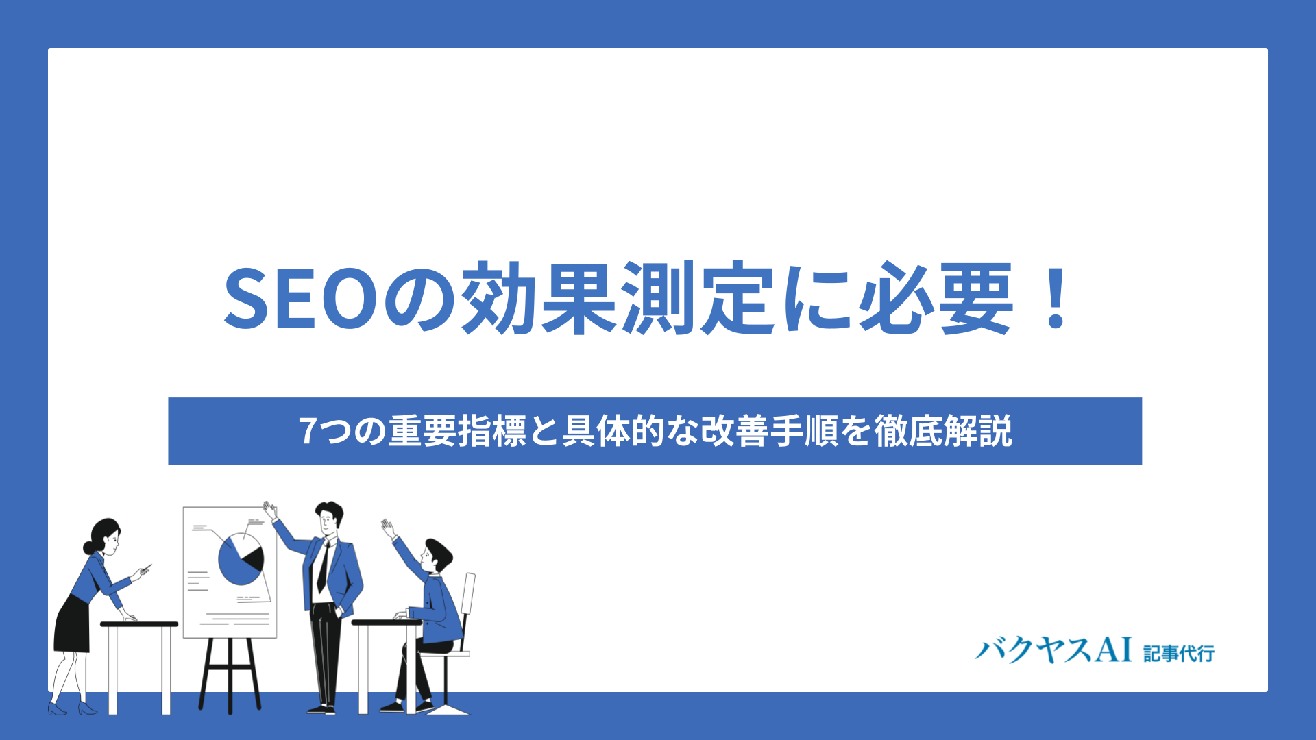 SEOの効果測定には、オーガニック検索流入数、検索順位、クリック率、ユーザー体験指標、コンバージョン率、ROIという7つの重要指標があります。これらを体系的に監視し分析することで、SEO施策の成果を正確に把握できます。