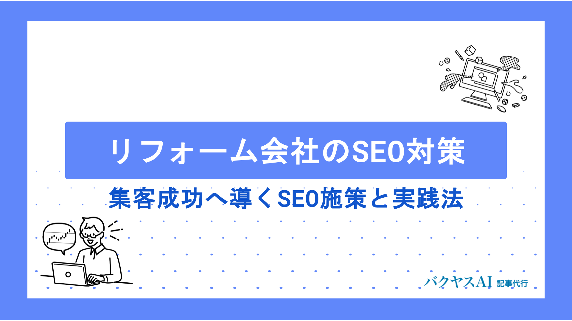 リフォーム業界での集客において、SEO対策は欠かせない重要な施策です。多くのお客様がインターネットでリフォーム会社を検索する現在、検索エンジンでの上位表示は売上に直結します。しかし、リフォーム会社のSEO対策には業界特有の難しさがあり、適切な戦略なしには思うような成果を得られません。本記事では、リフォーム業界のSEO対策における基礎知識から具体的な実践方法まで、成功するための完全マニュアルをお届けします。地域密着型のビジネス特性を活かしたローカルSEOから、競合他社との差別化を図るコンテンツ戦略まで、実際に効果が期待できる手法を詳しく解説いたします。