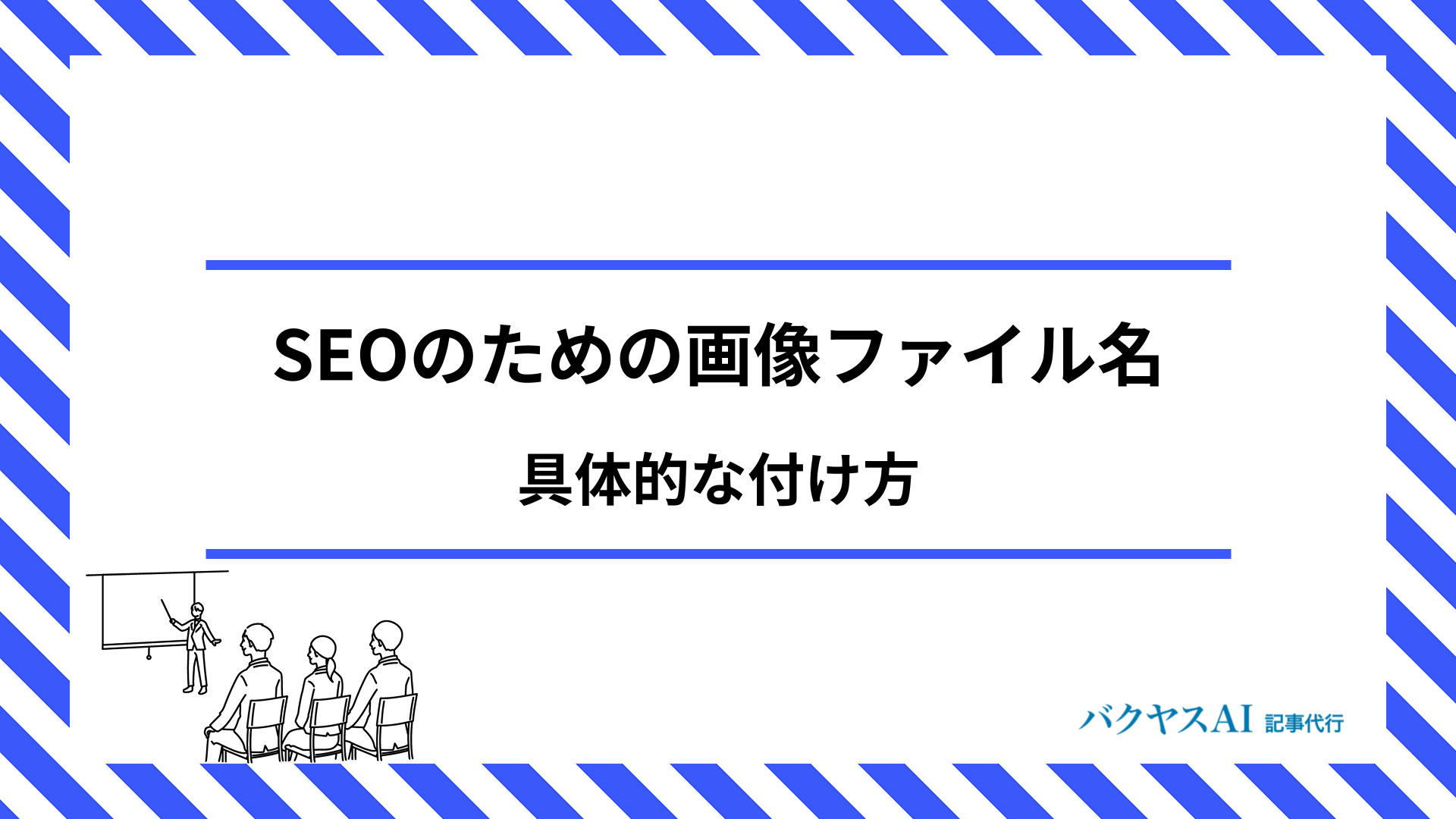 画像ファイル名には英数字とハイフン(-)のみを使用することが推奨されています。日本語やアンダースコア(_)、スペースの使用は検索エンジンに正しく認識されない可能性があります。