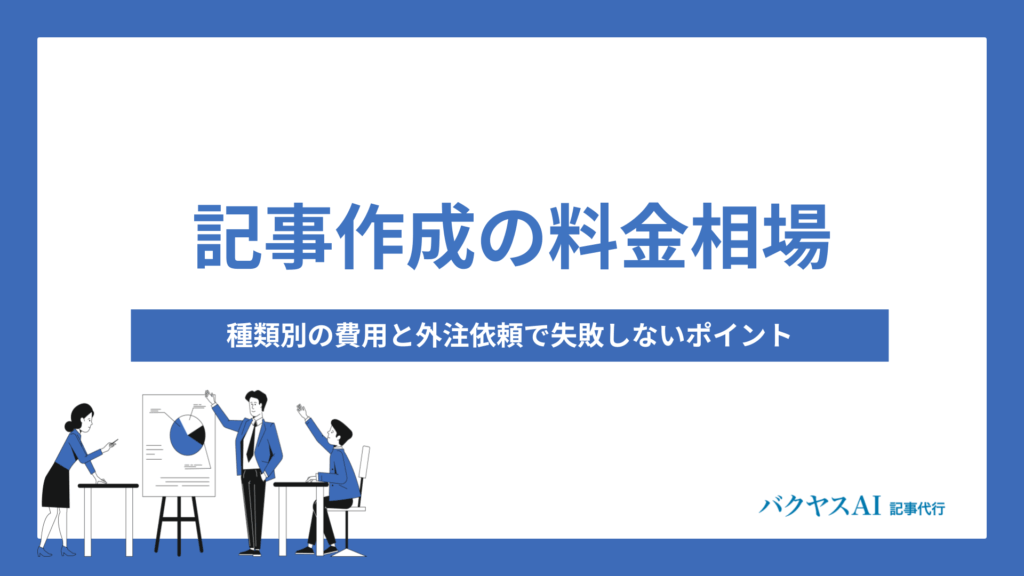 記事作成の料金相場を完全解説!種類別の費用と外注のポイントがわかる記事作成を外注する際に、最も気になるのが料金の相場です。記事代行の費用は、記事の種類や品質、文字数によって大きく変動し、適正価格を把握しないまま依頼すると、...