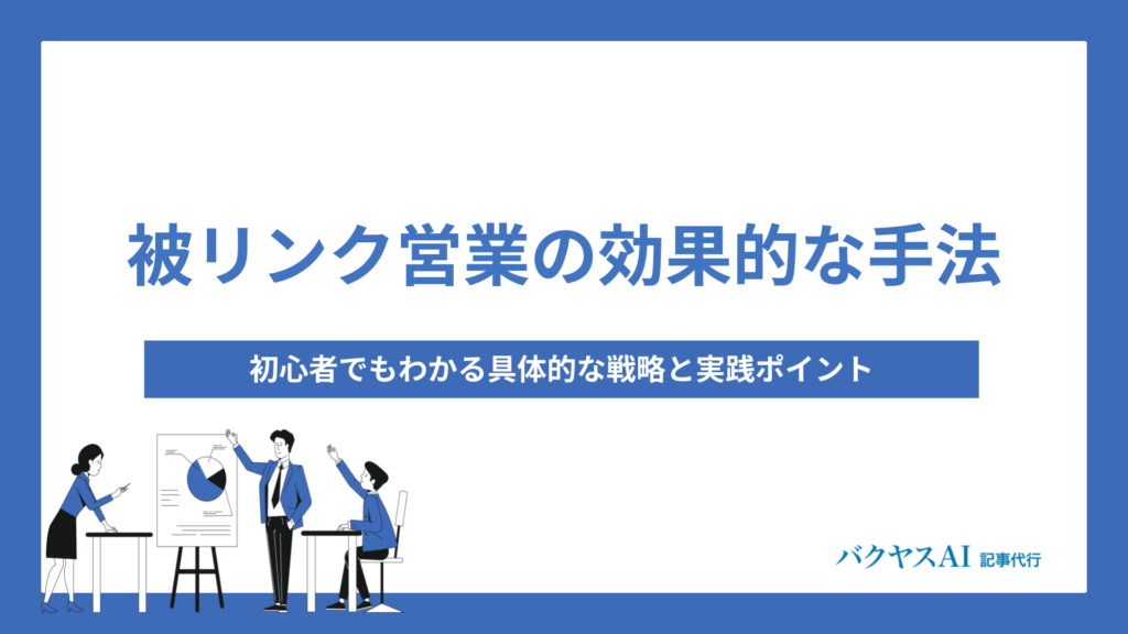 被リンク営業の効果的な手法とメール例文|初心者でもわかる具体的な戦略と実践ポイント被リンク営業は、SEO効果を高める重要な施策として多くの企業が注目している手法です。質の高い外部サイトから自サイトへのリンクを獲得することで、検索エンジンからの...