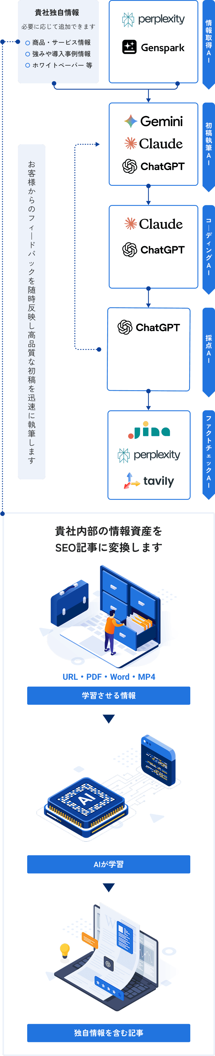 お客様のフィードバックをAIに反映してクオリティを継続的に向上させるため、ある程度のSEO記事数を発注したい方におすすめです。