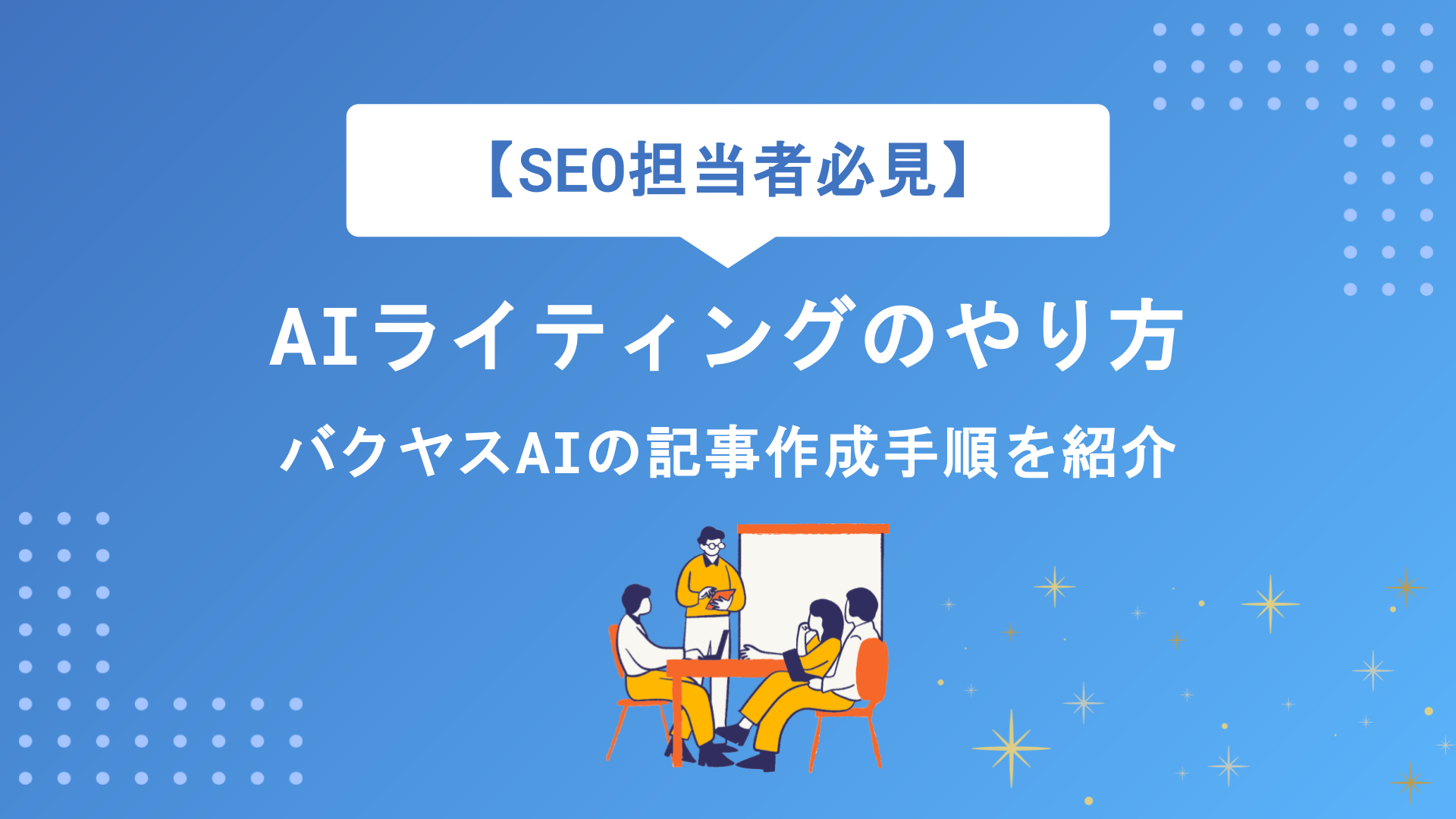 バクヤスAI 記事代行では、SEOの専門知識と豊富な実績を持つ専任担当者が、キーワード選定からAIを活用した記事作成、人の目による品質チェック、効果測定までワンストップでご支援いたします。