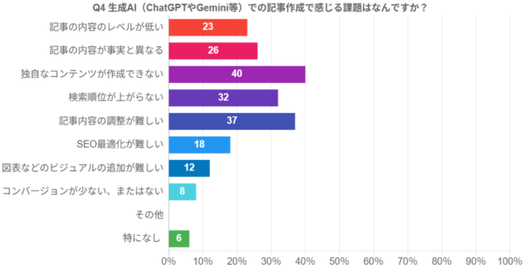AIを使えば「誰でも簡単に高品質な記事が書ける」わけではありません。多くの現場で以下のような課題が挙がっています。