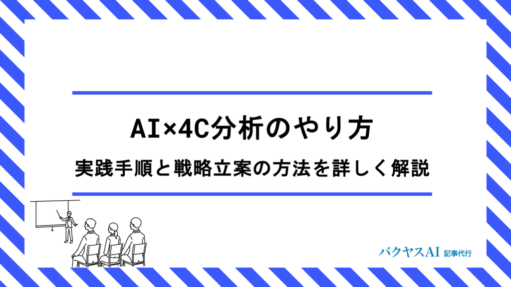AI×4C分析で顧客心理を発掘|実践手順と戦略立案の方法を詳しく解説市場分析において、顧客視点でのマーケティング戦略が重要視される現代、4C分析は企業にとって欠かせないフレームワークとなっています。従来の4P分析が企業視点に偏り... -