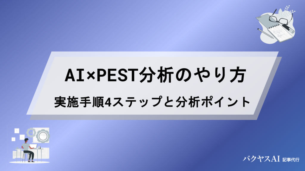 AI×PEST分析で環境変化を把握|実施手順4ステップと要素別分析ポイント企業を取り巻く外部環境は日々変化しており、その変化を的確に捉えることが経営戦略の成否を分けます。PEST分析は、政治・経済・社会・技術という4つの観点から外部環境... -