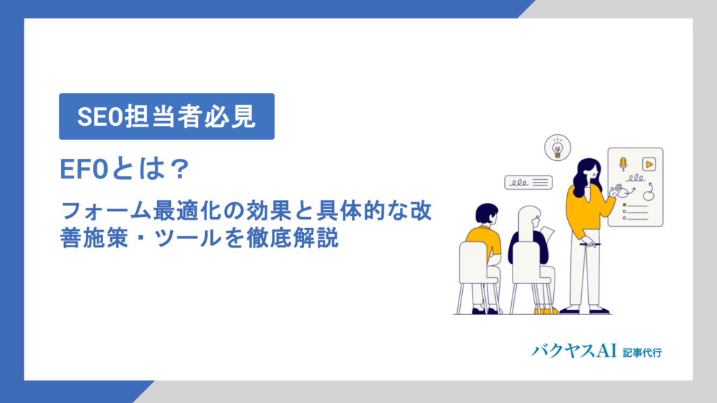 EFOとは?フォーム最適化の効果と具体的な改善施策・ツールを徹底解説この記事でわかること EFOとは何か、なぜ重要なのか EFO(Entry Form Optimization)はWebフォームを最適化してコンバージョン率を向上させる手法です。フォーム完了率... -