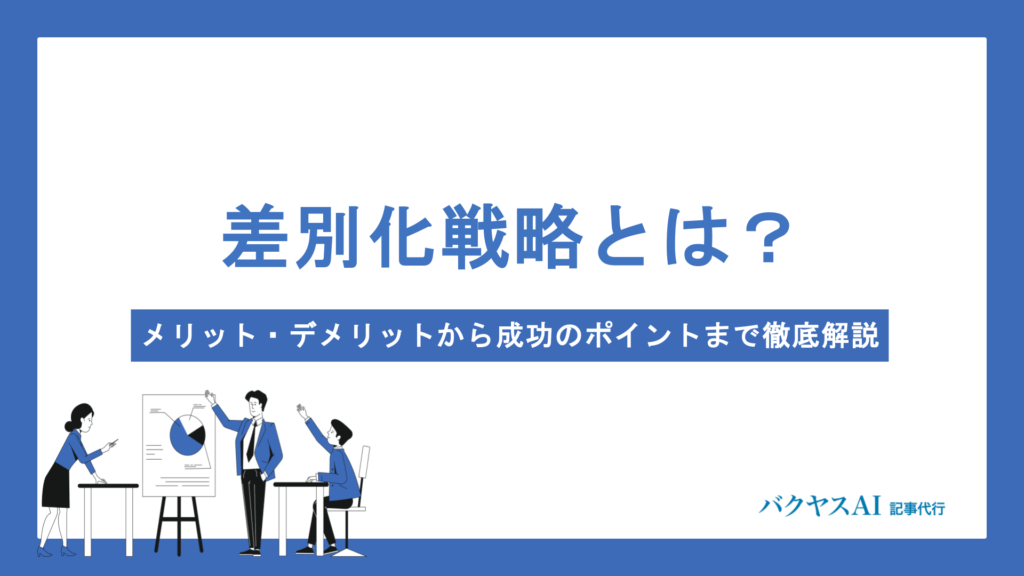差別化戦略とは?メリット・デメリットから成功のポイントまで徹底解説この記事でわかること 差別化戦略の基本概念と4つの主要な手法(商品・サービス、ブランド、価格、流通チャネル) 差別化戦略とは、自社の商品やサービスに独自の価値を... -