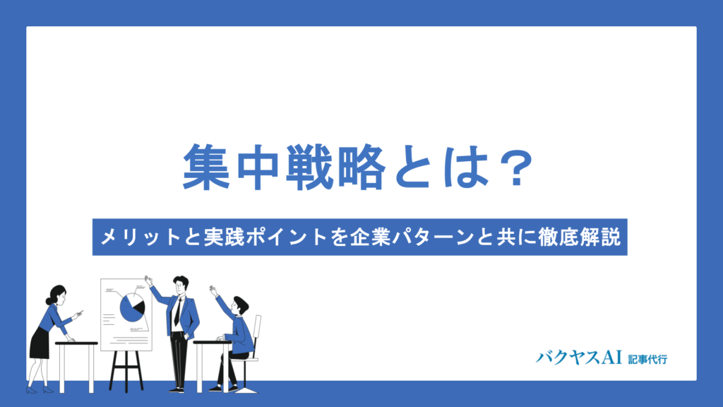 集中戦略とは?メリットと実践ポイントを企業パターンと共にわかりやすく解説この記事でわかること 集中戦略の基本概念と2つのアプローチ(コスト集中戦略と差別化集中戦略) 集中戦略は特定の市場セグメントに経営資源を集中させることで競争優位... -