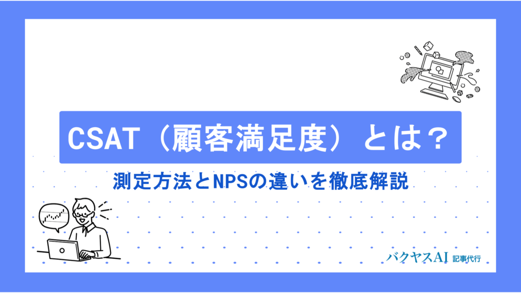 CSAT(顧客満足度)とは?測定方法とNPSの違いを徹底解説この記事でわかること CSATの基本概念と測定方法の具体的な手順 CSATは顧客満足度を数値化する基本的な指標で、5点または10点スケールで測定し、「満足」「非常に満足」... -