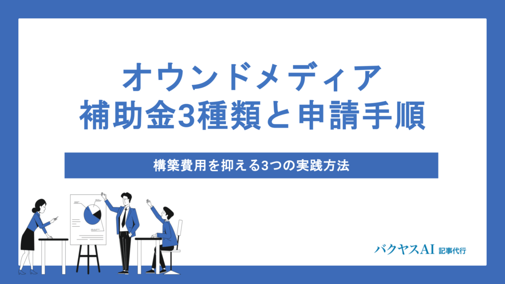 オウンドメディア補助金3種類と申請手順|構築費用を抑える3つの実践方法# 記事分析結果 この記事は「オウンドメディア補助金3種類と申請手順|構築費用を抑える3つの実践方法」について、補助金制度の種類、申請方法、費用削減のポイントを網... -