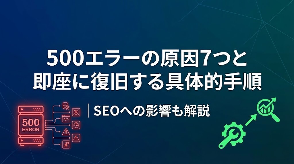 500エラーの原因7つと即座に復旧する具体的手順|SEOへの影響も解説この記事でわかること 500エラーの正体とサイトに与える影響 500エラーはサーバー内部で発生する問題を示すHTTPステータスコードで、サイトが完全にアクセス不能になり... -