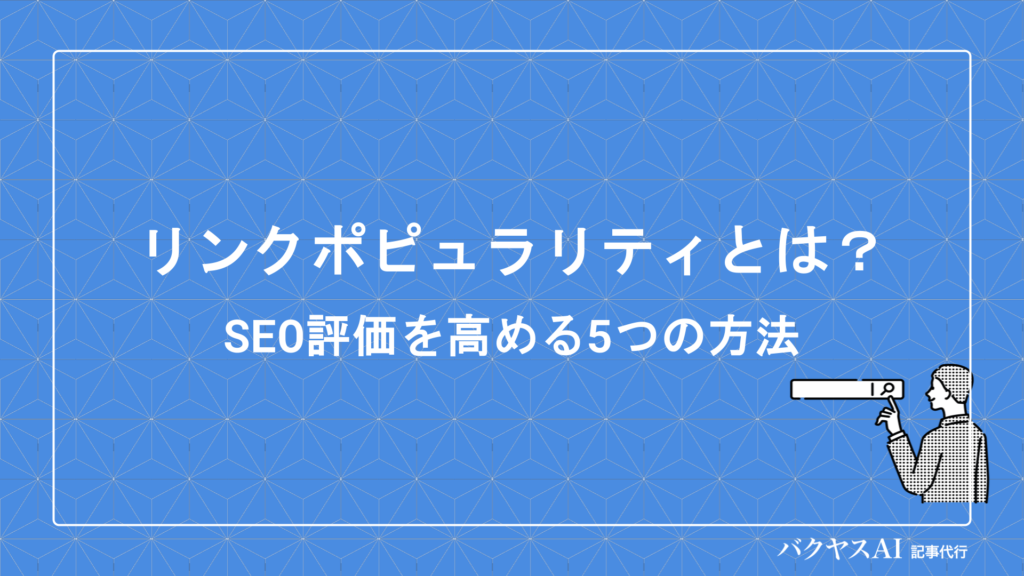 リンクポピュラリティとは?SEO評価を高める5つの方法と測定ツールを解説Webサイトの検索順位を上げるためには、コンテンツの質だけでなく、外部からの評価も重要な要素となります。その評価指標の一つが「リンクポピュラリティ」です。リンク...