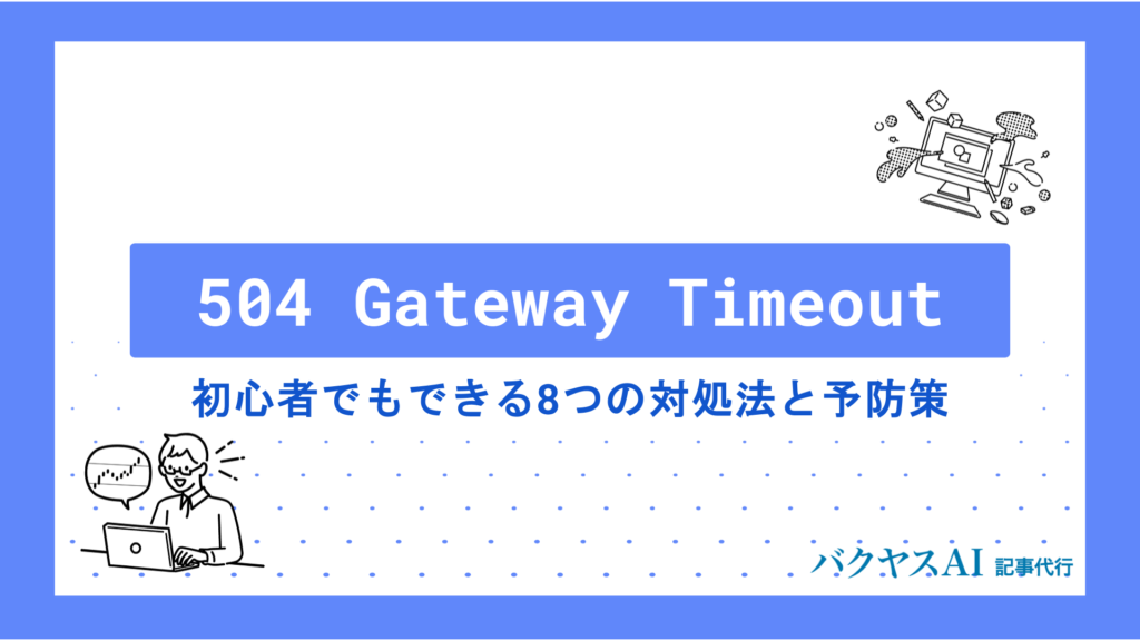 504 Gateway Timeoutエラーの原因と解決方法を完全解説|初心者でもわかる対処法Webサイトを閲覧していると、突然「504 Gateway Timeout」というエラーメッセージが表示されて困った経験はありませんか。このエラーは、サーバー間の通信がうまくいか... -