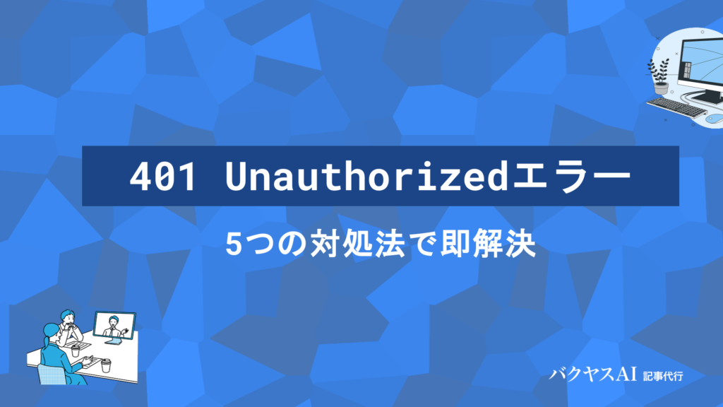 401エラー(Unauthorized)とは?発生原因と解決方法を初心者向けに徹底解説この記事でわかること 401 Unauthorizedエラーの意味と仕組み 401エラーはHTTPステータスコードの一つで、認証が必要なリソースへのアクセス時に認証情報が不足または無... -