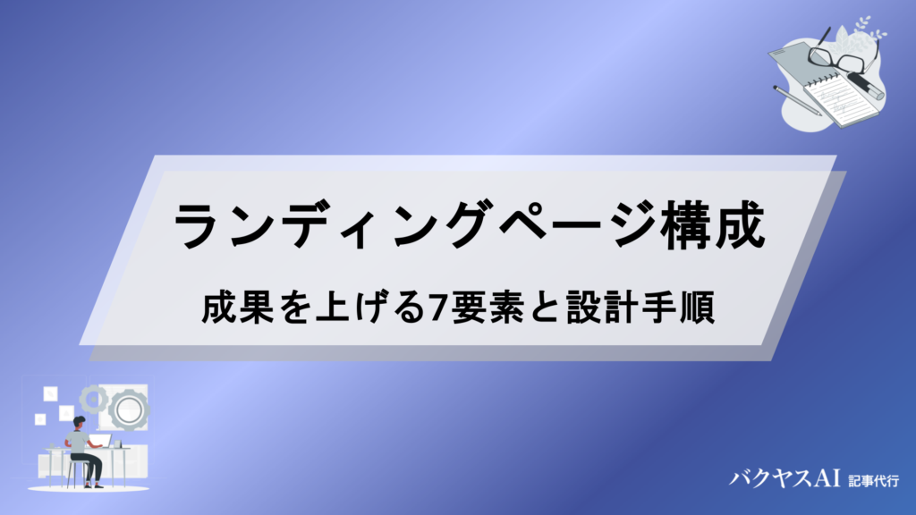 ランディングページ構成の作り方|成果を上げる7要素と設計手順を徹底解説この記事でわかること ランディングページに必要な7つの構成要素 ファーストビュー、CTA、ベネフィット、導入事例、FAQ、フォーム、フッターの7要素が成果を左右します... -