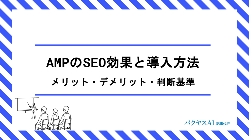 AMPのSEO効果と導入方法|メリット・デメリットから今後の判断基準まで徹底解説この記事でわかること AMP SEOの基本的な仕組みと特徴 AMPはGoogleが推進するモバイルページ高速化技術で、ページ表示速度の改善によりSEO効果が期待できます。 AMP導入... -