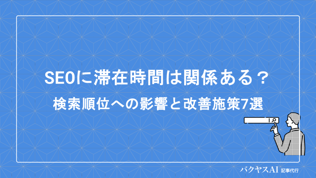 SEOに滞在時間は関係ある?|検索順位への影響と改善施策7選Webサイトを運営していると「訪問者がすぐに離脱してしまう」「ページを見てもらえない」という悩みを抱えることがあるでしょう。実は、ユーザーがサイトにどれだけ長く... -