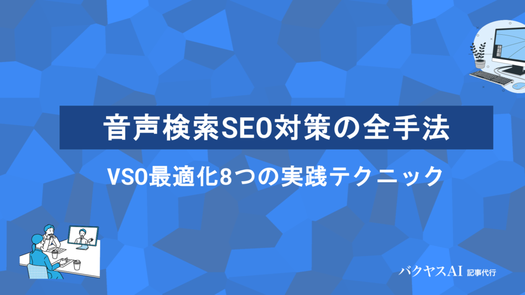 音声検索SEO対策の全手法|VSO最適化8つの実践テクニックと最新トレンド「OK Google」「Hey Siri」といった音声アシスタントの利用が日常化し、音声検索への対応がWebサイト運営において重要な課題となっています。スマートフォンやスマート... -