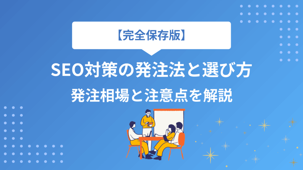 【完全保存版】SEO対策の発注方法と失敗しない選び方|相場・注意点を徹底解説SEO対策を外部に発注したいけれど、どこに頼めばいいかわからない。費用の相場はどのくらい?信頼できる業者の見分け方は?このような疑問を抱えている方も多いのではな...
