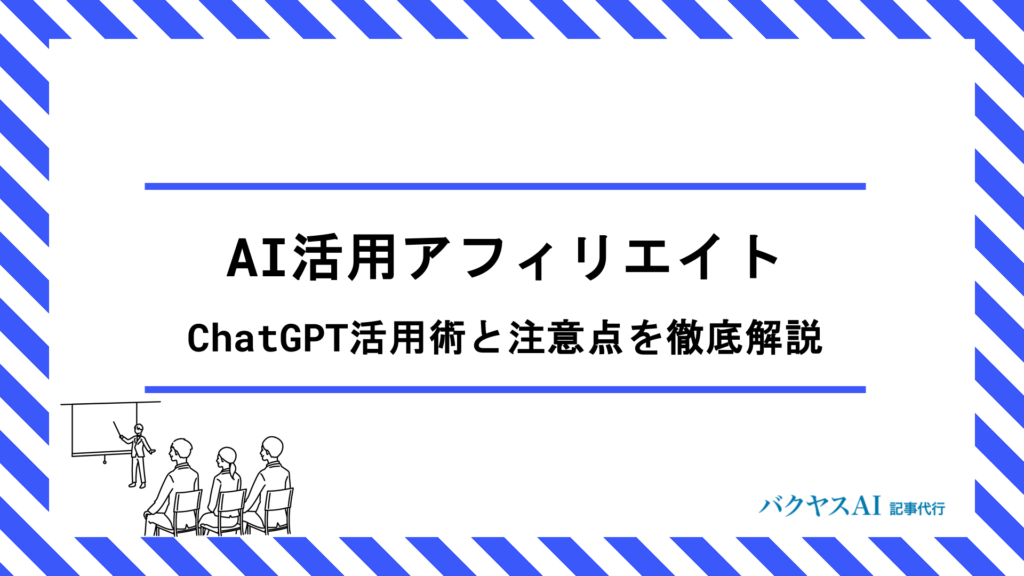 AIで記事作成してアフィリエイトで稼ぐ方法|ChatGPT活用術と注意点を徹底解説「AIを使って記事を作成し、アフィリエイトで収益を得たい」と考える方が増えています。ChatGPTをはじめとする生成AIの進化により、これまで時間がかかっていた記事作成... -