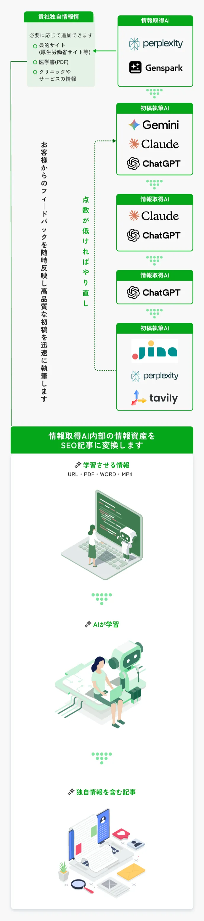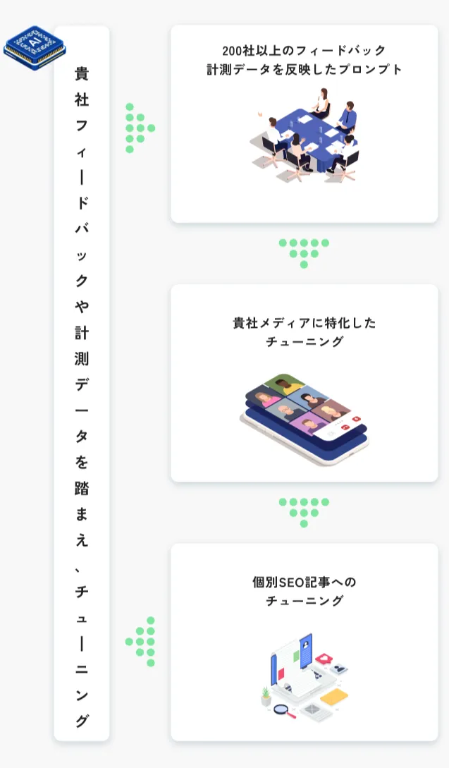 お客様のフィードバックをAIに反映してクオリティを継続的に向上させるため、ある程度のSEO記事数を発注したい方におすすめです。