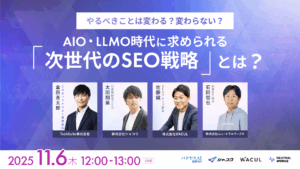 ウェビナー受付中 やるべきことは変わる?変わらない? AIO・LLMO時代に求められる『次世代のSEO戦略』とは? \今すぐカンタン申し込み!/ AI検索時代の到来で、SEOのルールが書き換わろうとしています 「これ…