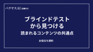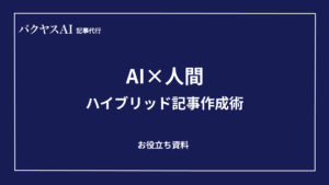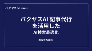 ダウンロードできる資料 ・『「バクヤスAI 記事代行」のご紹介』 ・『「バクヤスAI 記事代行」の導…